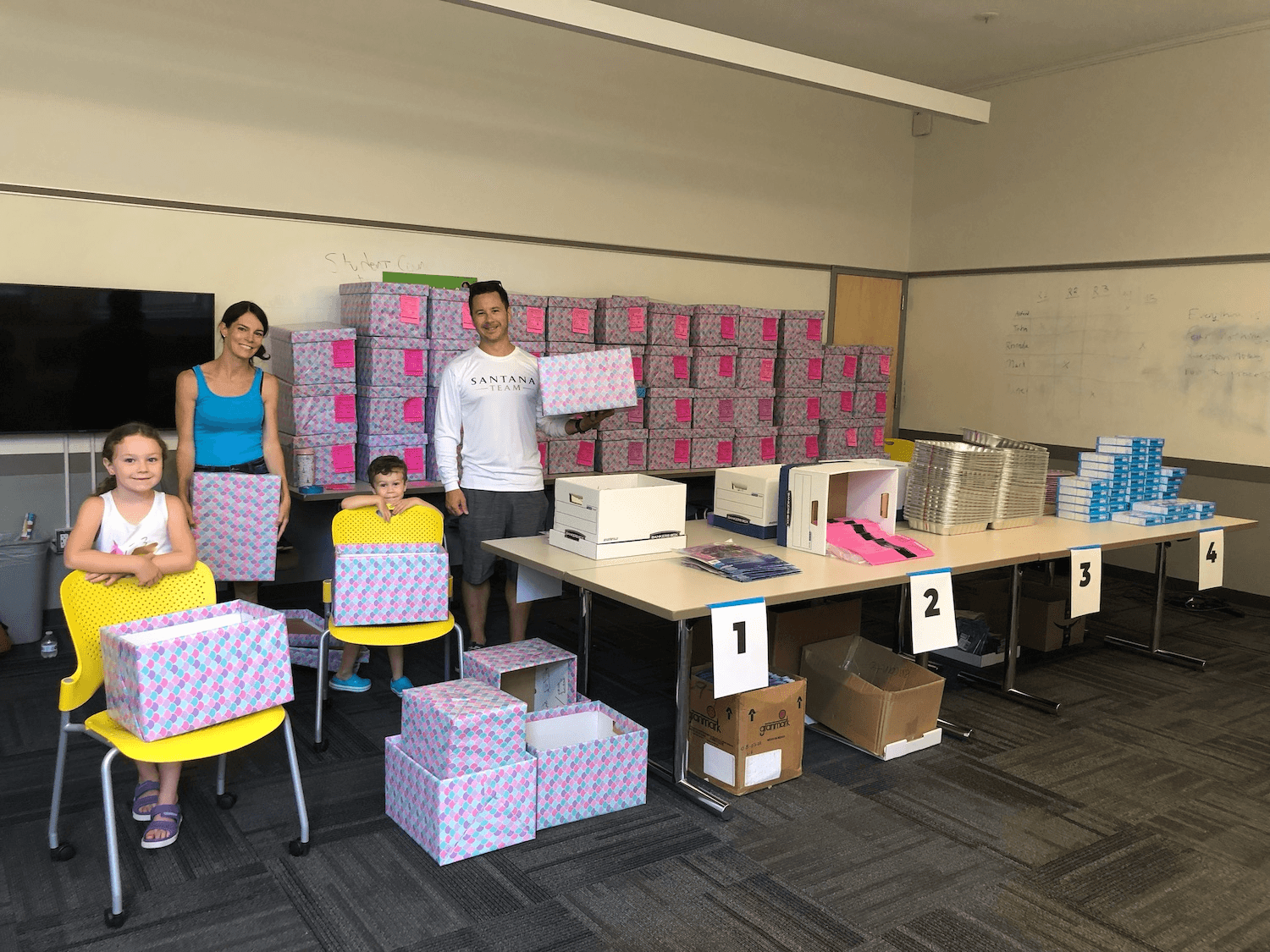 Birthday Wishes: The Santana team buys and packages presents on a wishlist for over 500 children in the Boston area every Summer.